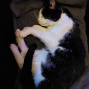 M: Nou als je zo hard loopt te miauwen midden in de nacht voel ik me niet altijd lief voor je. Je hebt een grote invloed op onze slechte nachtrust en daar kunnen we niet altijd even geduldig mee omgaan.