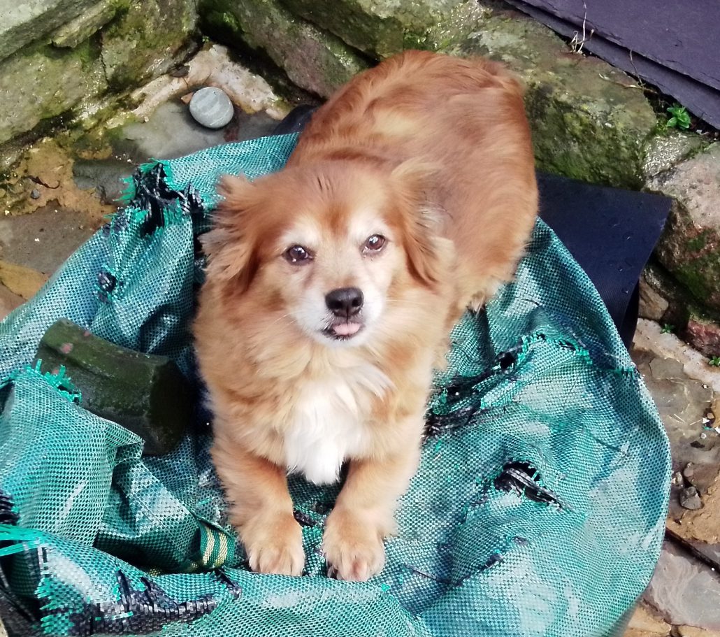 Ik besluit niet moeilijk te doen en we starten het gesprek. De grote vraag is of hij door had dat Jenn hem tijdens zijn overlijden wilde bijstaan. Want alles was zo plotseling gegaan dat zij in paniek was maar ook wat voor de hond wilde betekenen. Ik kan mijn vraag amper formuleren in beeld want meteen laat Roly zien dat er voor hem maar één manier was om te gaan: ineens een grote sprong nemen. Een langdurig of langdradig afscheid zou hij niet (aan)kunnen dus dit was de enige manier. En met dat hij die sprong gemaakt had, bleef hij meteen aan de rand van dat grote lichte geheel wachten. Dat wachten is niet een vervelend wachten zoals wij dat hier kennen, maar een rustig en geduldig wachten. En ondertussen heeft hij plezier want ik voel steeds een beginnende borrelende lach binnen in me.